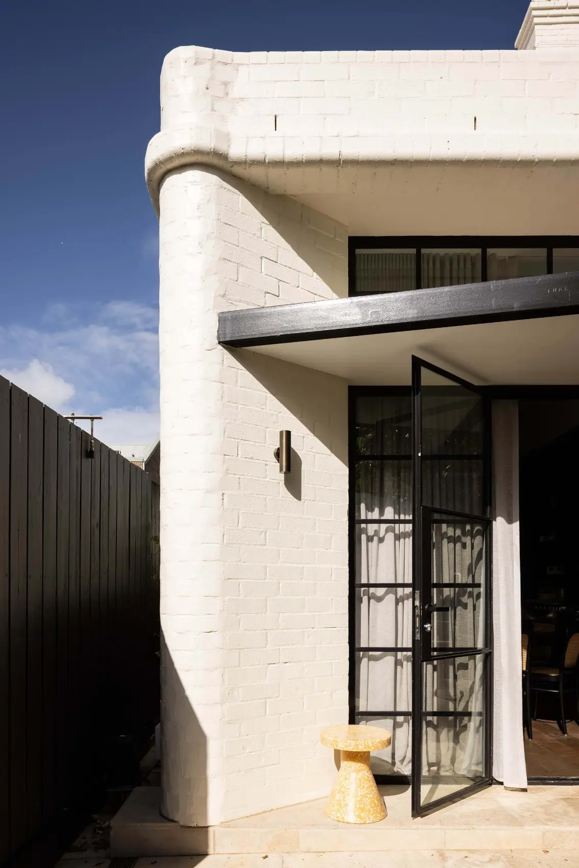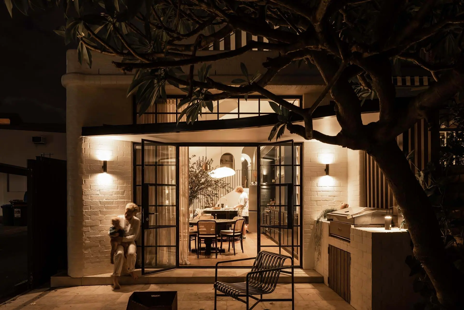 The space is flooded with natural light from the north, and with dappled, warm afternoon sun from the west via a screened highlight window and vast steel doors shaded by a gorgeous, mature frangipani. Beyond the doors to the west is a walled yard that includes a vegetable and herb garden, mature trees and lawn for the kids to play on.