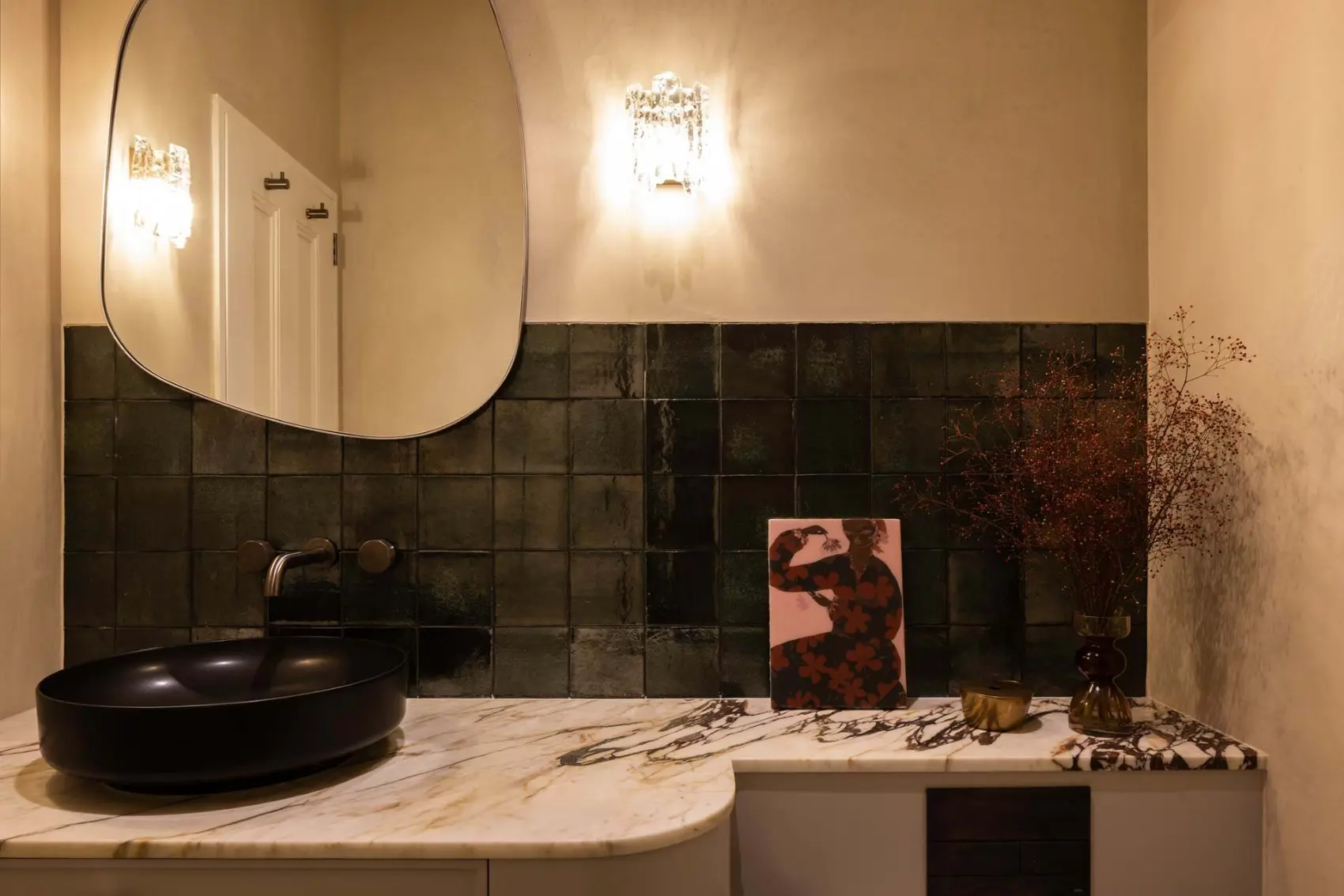 Up the timber and steel staircase, the original, turn-of-the-century terrace house has been invigorated with new joinery, reconditioned floorboards and exquisite new bathroom and laundry spaces that reflect the eclectic, sophisticated style of the owners. Efficient use of space in the original terrace footprint now also grants the family a kids’ playroom, a mudroom and lots of extra storage.