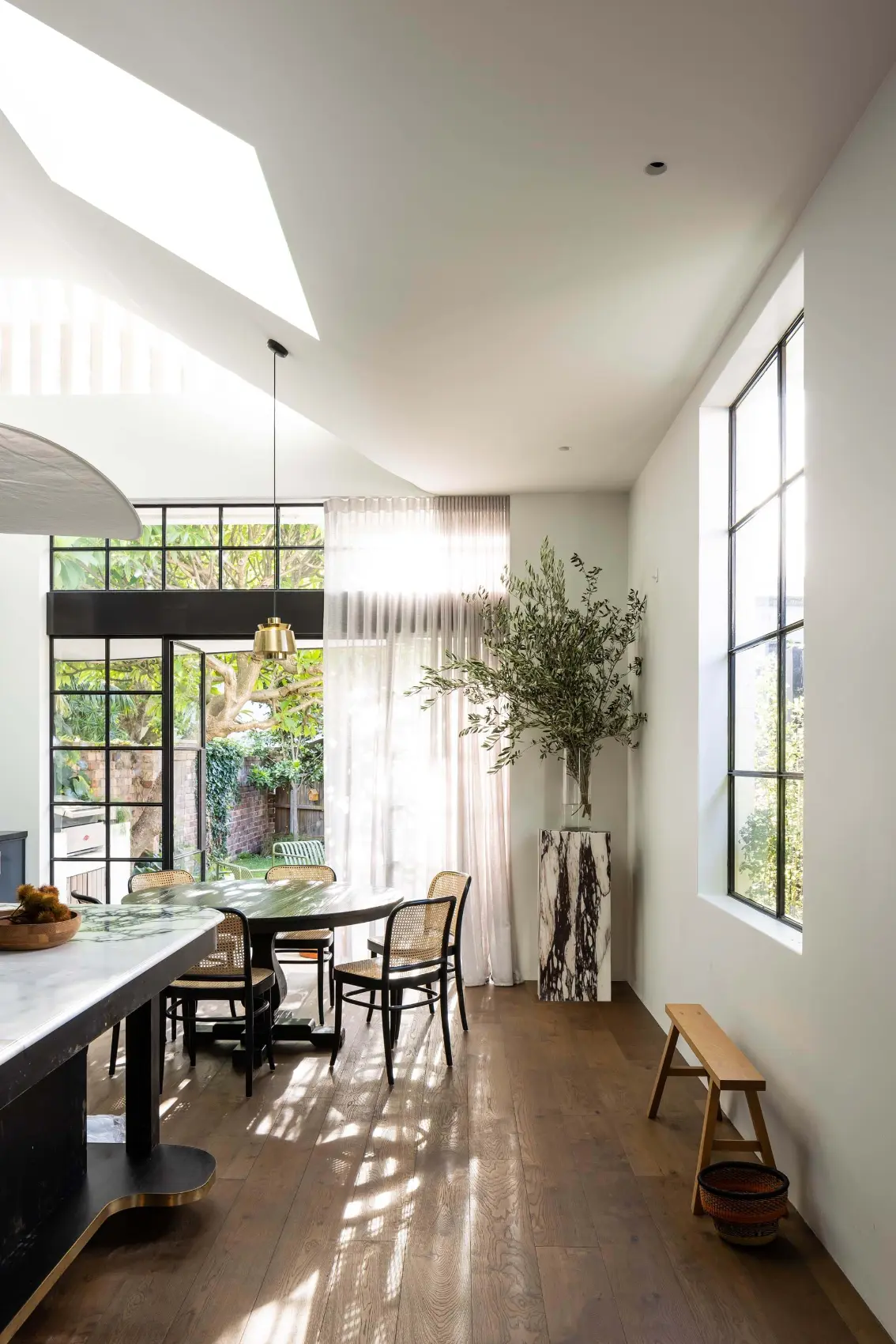 Prior to its transformation, the level changes across the hundred-year-old once-fire station had made the house a labyrinth of split stories, changing ceiling heights and small rooms. The opportunity quickly revealed itself; to rationalise the small spaces into one sweeping living area that could take advantage of the available height and create a contemporary, central nucleus space for the family while still retaining and elevating the original home.