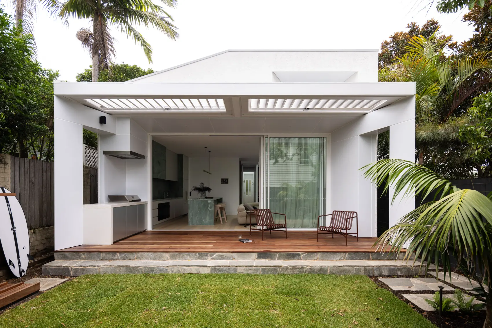Every element was carefully considered, ensuring a seamless integration of form and function. Hatch restored the charming front gable and intricate lace screen to maintain its existing character.